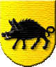 En campo de oro, un jabalí andante de sable.En campo de azur, un león rampante, de púrpura, coronado de oro.