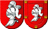 En campo de gules, un brazo armado de plata sosteniendo con la mano por el penacho un yelmo de lo mismo. Bordura cosida de gules con cinco coronas de oro.Listado Alfabético de Apellidos