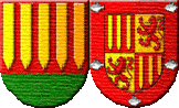 En campo de gules cinco estacas de oro terasadas de sinople.Otros traen escudo cuartelado: 1º y 4º de gules con tres estacas de oro. 2º y 3º de oro con un león rampante de gules. Bordura de gules con cinco peces de plata.